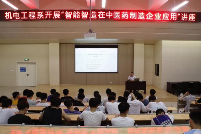 为深化产教融合,加强校企合作协同育人,促进智能制造专业群学生对智能制造产业发展有更清晰的专业认识与职业发展定位,提升智能制造专业群人才培养质量。机电工程系于6月2号晚上19:00邀请华润江中高级经理陈水平(华润江中制造基地动力车间主任)在志学楼504为机电学子带来了一场以“智能智造在中医药制造企业应用”为主题的讲座。