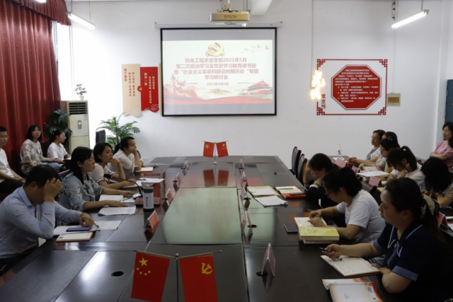 为学习《毛泽东,邓小平,江泽民,胡锦涛关于中国共产党历史论述摘编》之文章《我们党的一些历史经验》和了解党的历史,从中汲取智慧和力量,增强“四个意识”、坚定“四个自信”、做到“两个维护”,全面建设社会主义现代化国家、实现中华民族伟大复兴的中国梦。光明党支部于5月31日中午12.40召开第二次政治学习议程及党史学习教育读书班暨“社会主义革命和建设时期历史”专题学习研讨会。会议由机电工程系副主任马龙凤主持、系部全体教职工参加学习。会议主要分为十项议程: