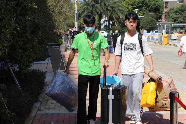 为迎接2021级的“萌新们”提高报道效率,志愿者们成为校园一道亮丽的风景。