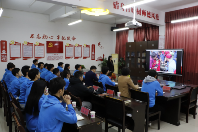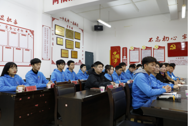 此次活动,既是一次生动的革命传统教育,也是一次深刻的思想洗礼。党员教师纷纷表示要铭记建党百年奋斗史,传承好红色基因,牢记现在的美好生活是革命先烈们的无私奉献创造的。作为新时代的党员教师,我们应继承和发扬好革命传统,不忘立德树人初心,尽心尽力做好学生工作,为中华民族的伟大复兴培养时代新人。 同上思政课,感悟鲜明底色 2021年11月26日下午14:00,宋小兵走进智能制造中心101来到思政课钟洪波老师的课堂,与19级同学代表齐上一堂思政课。在课堂上,钟洪波老师从红色政党立初心、共产党人守初心和红色江山代代传三个方面讲述红色资源是我们党艰辛而辉煌奋斗历程的见证,是最宝贵的精神财富。红色血脉是中国共产党政治本色的集中体现,是新时代中国共产党人的精神力量源泉。