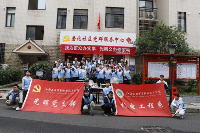 “不知何兴味,更有好伙伴。”每一个项目对参赛队员们之间的默契都有高度要求,场上运动员们的疯狂奔跑、手忙脚乱、憨态可掬,使得整个运动场上喝彩声阵阵,加油声不断。获胜的一方,师生们笑着跳着,大声庆祝胜利;暂时失利的一方也不气馁,他们为赢家喝彩,也正摩拳擦掌准备着下一场比赛。每个项目的比赛中,双方互相竞争、互相鼓励,处处体现着“友谊第一,比赛第二”的友好气氛,团结并进的精神悄悄在师生之间传递。 我为群众办实事赓续红色血脉 2021年11月20日上午9:00,宋小兵和机电工程系全体党员及教职工、学生志愿者与磨北社区党支部开展“我为群众办实事”结对共建党日活动。一是带领社区小朋友一同画画,学唱红歌,听红色故事及宣讲消防安全知识,引导学生铭记革命先烈的英勇精神,确立勤奋学习的目标,立志长大后为建设祖国贡献自己的力量。二是开展汽车检修及保养服务,保障社区居民安全出行。三是开展家电维修服务,更好地发挥机电人专长,同时确保了社区居民的用电安全问题。四是开展科技下乡活动,引领社区小朋友崇尚科技,激发他们的创新能力。
