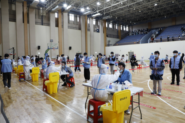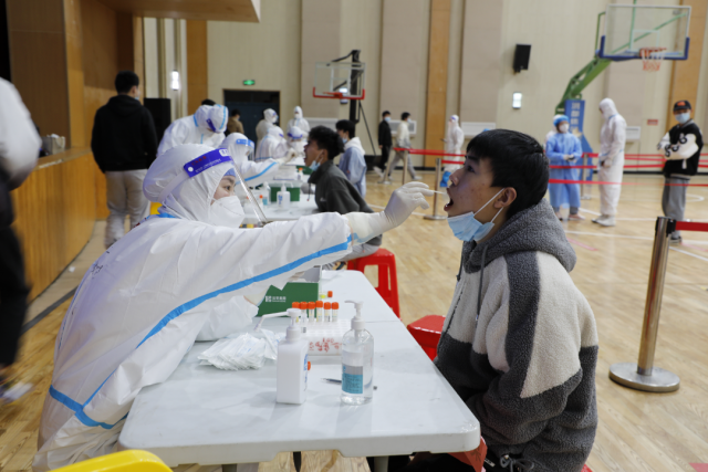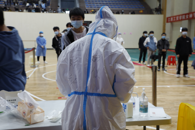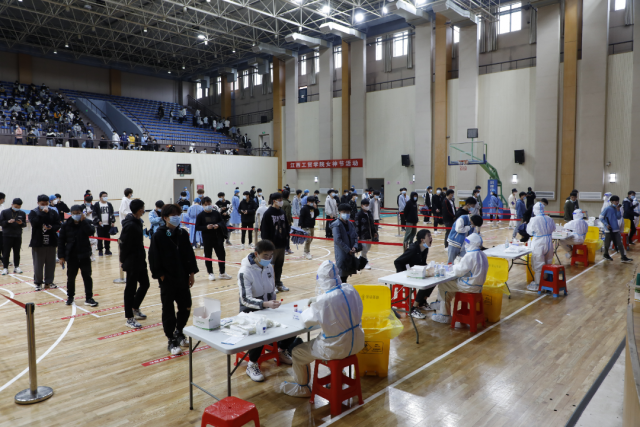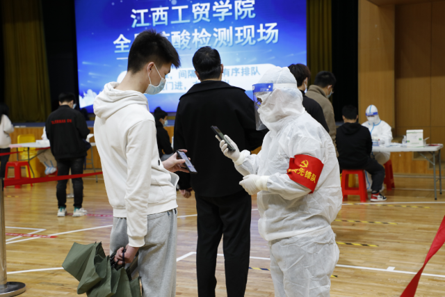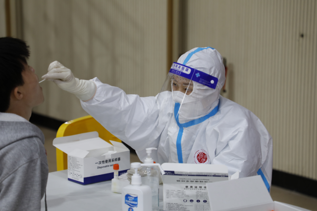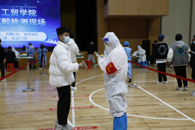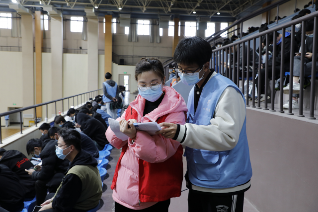 同学们按照医护人员指引登记个人信息,核对姓名,通过咽拭子方式,采集样本,有序离开。在组织好学生检测的同时,密切配合,相互支持,打好组合拳,保证核酸检测工作顺利完成。