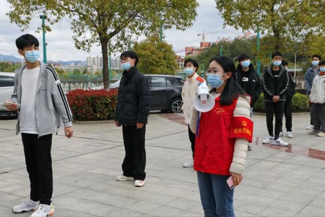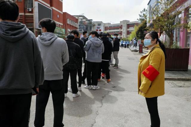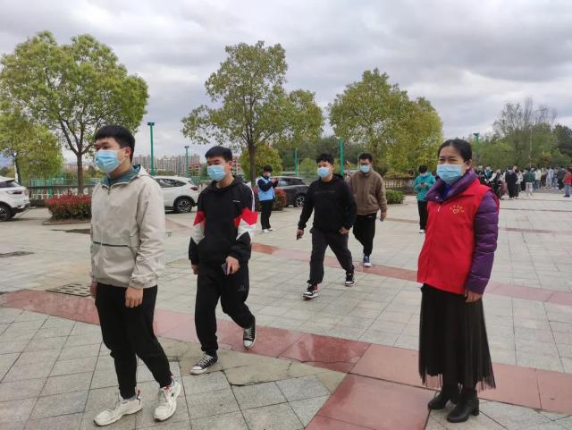 青年志愿者们在现场协助开展信息录入、秩序维护等核酸采样志愿服务工作,全体人员积极配合、秩序井然,整个检测流程从采样到离场,组织有序、保障有力、防护到位。 风雨坚守 只为“疫”过天晴 在老师的指引下同学们听从指挥,积极配合,有序排队,分批进入,保持1米距离。