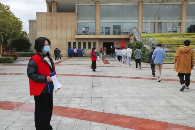 处“疫”不乱 稳中求胜 核酸检测前,合理规划布置核酸采样场地,确保采样过程不扎堆,不聚集。“蓝精灵”志愿者们早已在数控、汽车实训中心、体育馆等候着机电工程系师生的到来。医护人员穿戴着全套医疗防护装备,做好消毒准备工作,避免交叉感染。机电师生井然有序地排着队,戴着口罩,错时错峰的在志愿者带领下前往核酸检测现场。