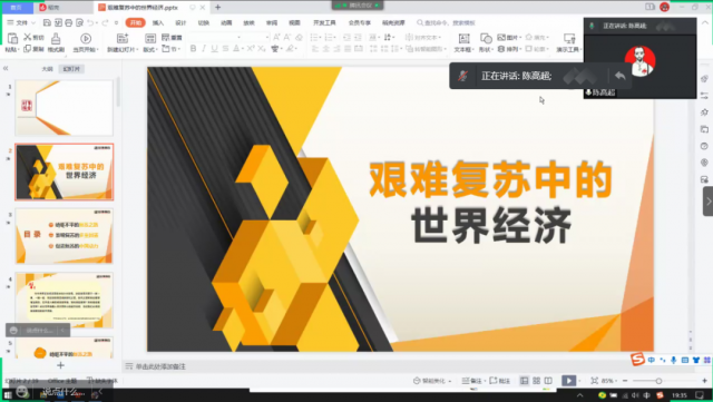 为使同学们深入认识到中国在疫情防控和经济社会发展上交出的举世瞩目的答卷,中国政府的一系列扩大对外开放的政策措施,为世界各国共享中国经济发展红利提供机遇。3月30日晚上19:00—20:30,机电工程系光明党支部通过线上的方式开展“十百千宣讲团”暨践行新时代文明实践宣讲形势政策主题宣讲活动。机电工程系辅导员陈高超同志以《艰难复苏中的世界经济》为主题,为20汽车检测与维修技术班、20新能源汽车技术班全体学生讲授了一堂精彩纷呈的形势与政策课。