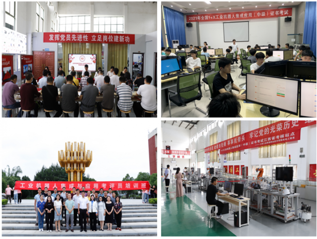 于2021年4月份开始安排学生进行1+X操作技能培训,5月份成功组织20级工业机器人专业的学生进行机器人系统集成1+X(中级)考证,通过率大大高于兄弟院校。 机电工程系已成功开展2年“1+X”考证工作,并举办全省机器人系统集成“1+X”师资提升班,协助江西制造职业学院到我院完成考评。这些工作推进是学院党委高度重视,产学研培中心具体指导,系部积极落实深化职教改革的重要内容,各项工作得到了“华航唯实”的高度赞赏。