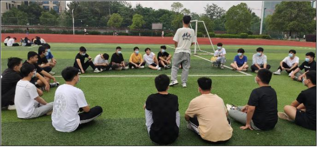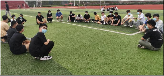 有些班级在田径场上围坐一圈,分享生活趣事,倾诉烦恼忧愁、憧憬美好未来,也有同学用一首歌曲表达自己的喜怒哀乐,用一段舞蹈释怀内心感悟,倾听与诉说都是一种表达关心和温暖的方式。
