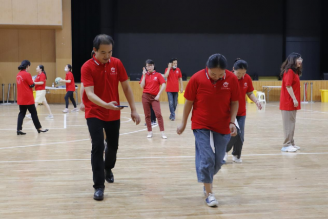 活动过程中,由于参赛老师需要腿部夹着纸张,要求“异脚同步”行进,加之必须在最短时间内完成,因此大大增加了比赛难度,对教师们的敏捷能力与协调能力是一次极大的考验。