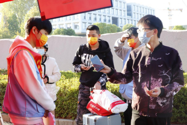 防疫进行时 戴好口罩、测量体温,查看健康码、行程码、核酸检测报告,认真的测量、严谨的检查,此次迎新,我们不仅有饱满的热情,还有绝对负责的态度,更有到位的防疫措施。