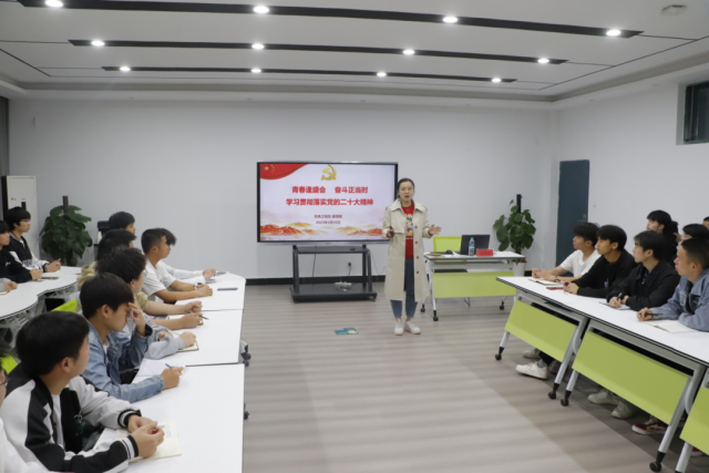 为深入学习宣传贯彻党的二十大精神,发挥团课在学习宣传党的二十大精神和广大青年思想引领中的突出作用,把全团思想和行动统一到党的二十大精神上来。机电工程系业余团校于2023年4月26日18:30,由机电工程系副主任晏慧敏在厚泽楼323开展主题为《青春逢盛会,奋斗正当时》的党的二十大精神主题党课。