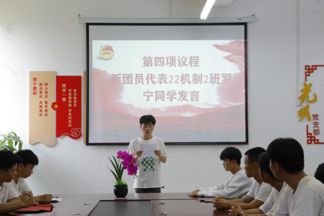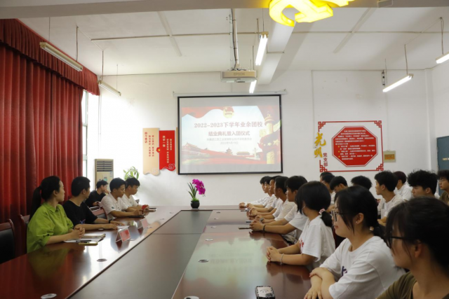 为使广大青年学生牢记习总书记的教导,推动党的二十大精神在广大青年中走深走心走实,团结带领广大青年学生感党恩、听党话、跟党走,进一步坚定入团积极分子的理想信念,选拔一批优秀青年学生加入团组织。机电工程系团总支于4月12日-5月8日期间开展了2022-2023下学年业余团校,授课老师们以党的二十大精神为指引,为同学们讲解了二十大报告精神、建党精神和新时代大学生应具备的政治修养和能力等方面内容。现已全部完成相关课程的学习。 系团总支于5月19日在厚泽楼324举行了机电工程系2022-2023下学年业余团校结业典礼暨入团仪式。参加本次会议的有机电工程系光明党支部副书记、副主任晏慧敏和团总支书记马星宇老师。