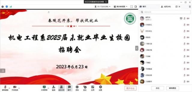 为全面贯彻党的二十大精神,深入落实国家、自治区、市关于做好高校毕业生就业工作的系列决策要求,扎实推进毕业生充分高质量就业,江西工业贸易职业技术学院机电工程系于2023年6月23日下午两点举办线上校园招聘会,进一步解决企业招工难、学生就业难问题。