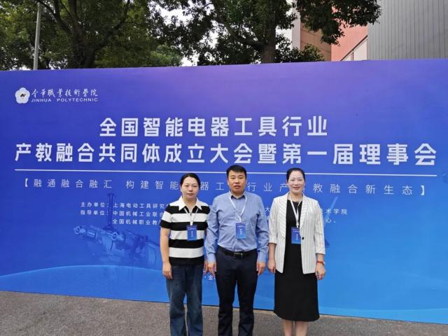 2023年10月14日在浙江金华市,由上海电动工具研究所(集团)有限公司牵头,以上海交通大学、金华职业技术学院等单位为核心成员,联合全国范围内的电器工具行业优质企业、中高等院校、行业协会、科研院所等成立全国智能电器工具行业产教融合共同体(以下简称“共同体”)。学院分管产学研培工作副院长宋小兵、机电工程系主任马龙凤、工业机器人教研室主任韦娜参加此次成立大会。