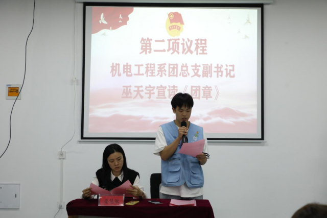 不忘入团初心牢记青春使命 会议开始由马星宇老师和巫天宇同学宣读《中国共产主义青年团章程》:从团章结构、总则解读、条文解读三个角度,为团校学员们梳理了团章内容及重点,进一步提高了学员们对团章的理解,帮助大家今后更好地遵守团章、做好团务工作。