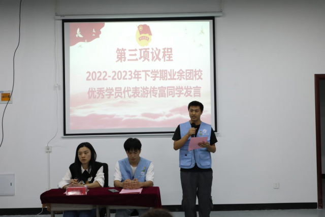 青春正启航争做新青年 由本期业余团校代表祝乐恺、钟艳同学发言,其中钟艳同学讲到:我很荣幸成为业余团校其中的一员,作为一名团校中的新成员,我知道这不是梦的尽头,而是梦的开始。进入团校学习正是我们锻炼品德意志,提高思想水平觉悟的一次宝贵机会,我会努力以身作则,不推托懈怠,为成为一名优秀的共青团员做好准备。