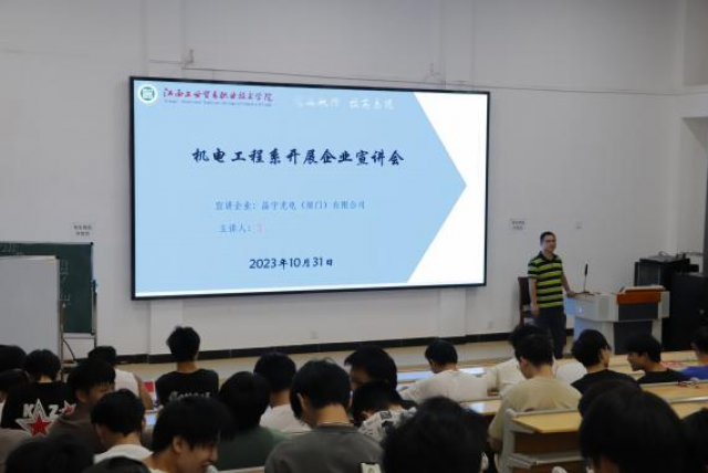 为贯彻落实习近平总书记关于加强高校毕业生就业工作的重要批示精神,充分发挥校企招聘的合作优势,促进高校毕业生高质量充分就业。机电工程系于2023年10月31日晚18:30-21:00在志学楼214开展访企拓岗促就业的专项招聘会。本次邀请来校的企业有:晶宇光电(厦门)有限公司、上海三菱电梯有限公司江西分公司、南昌海大生物科技有限公司、浙江长江汽车电子有限公司。参加此次企业宣讲会的为机电工程系2024届汽车专业毕业生。
