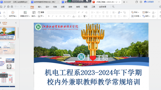 为提升机电工程系校内外兼职教师教学水平,规范教学行为,提升专业素养,落实立德树人。机电工程系于2024年2月25日晚上7:00召开2023-2024年下学期校内外兼职教师师德师风及业务能力提升培训线上会议,参加本次培训有分管教学副主任刘耀元、教学管理员王萍、3位教研室主任及所有本学期在机电工程系担任课程的校内外兼职教师。本次培训五个议程,首先由王萍老师从系情、生情着手,介绍学校开学时间和作息时间,从学院、系部的常规教学管理到规范的上课安排等规范教学要求,从教案的规范填写,上课的课堂管理和实施措施,从平时的作业到期末的出卷等,事无俱细,逐条讲解了《教学管理制度汇编》中课程教学注意事项,进行了非常清晰系统的交流培训。