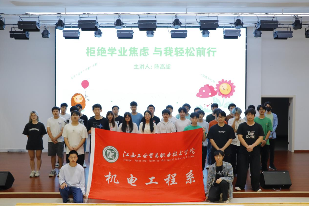 为深入学习贯彻习近平新时代中国特色社会主义思想,落实省委省政府和省教育厅对学校心理健康工作的有关决策部署,进一步增强学生心理健康教育的针对性和实效性,解决广大学生对来源于学业、家庭的压力焦虑,守护广大同学的心理健康,保障学生的心理健康教育安全,让心理健康问题得到更高的重视,机电工程系开展主题为“拒绝学业焦虑”心理健康讲座。
