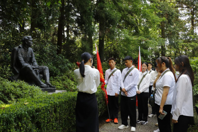 学员们在纪念堂前面向团旗重温入团誓词,向先辈展现出他们的理想信念。