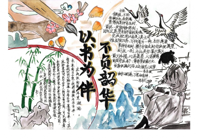 23机电一体化中高职对接2班刘恺峰、段文涛、廖建鸿 “深耕阅读路 闻得百花香”。一字一句的书写来自同学们智慧的心灵,一丝一缕的绘画来自同学们灵巧的双手,一诗一文的摘录来自同学们对读书的热爱。通过此次读书手抄报评比活动,培养了学生的动手能力,激发同学们阅读创作的热情,也让同学们明白了读书的意义,为进一步营造书香校园文化氛围增添了一抹馨香。