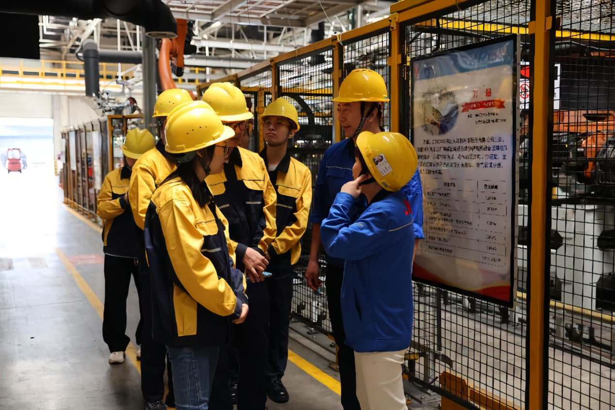为引导学生深入企业实地察看工业机器人应用 场景、调研企业需求。10月20日上午,机电工程系国赛参赛选手在系部教师刘冬梅、韦娜带领下,到省内智能制造头部企业江铃汽车股份有限公司进行参观学习。
