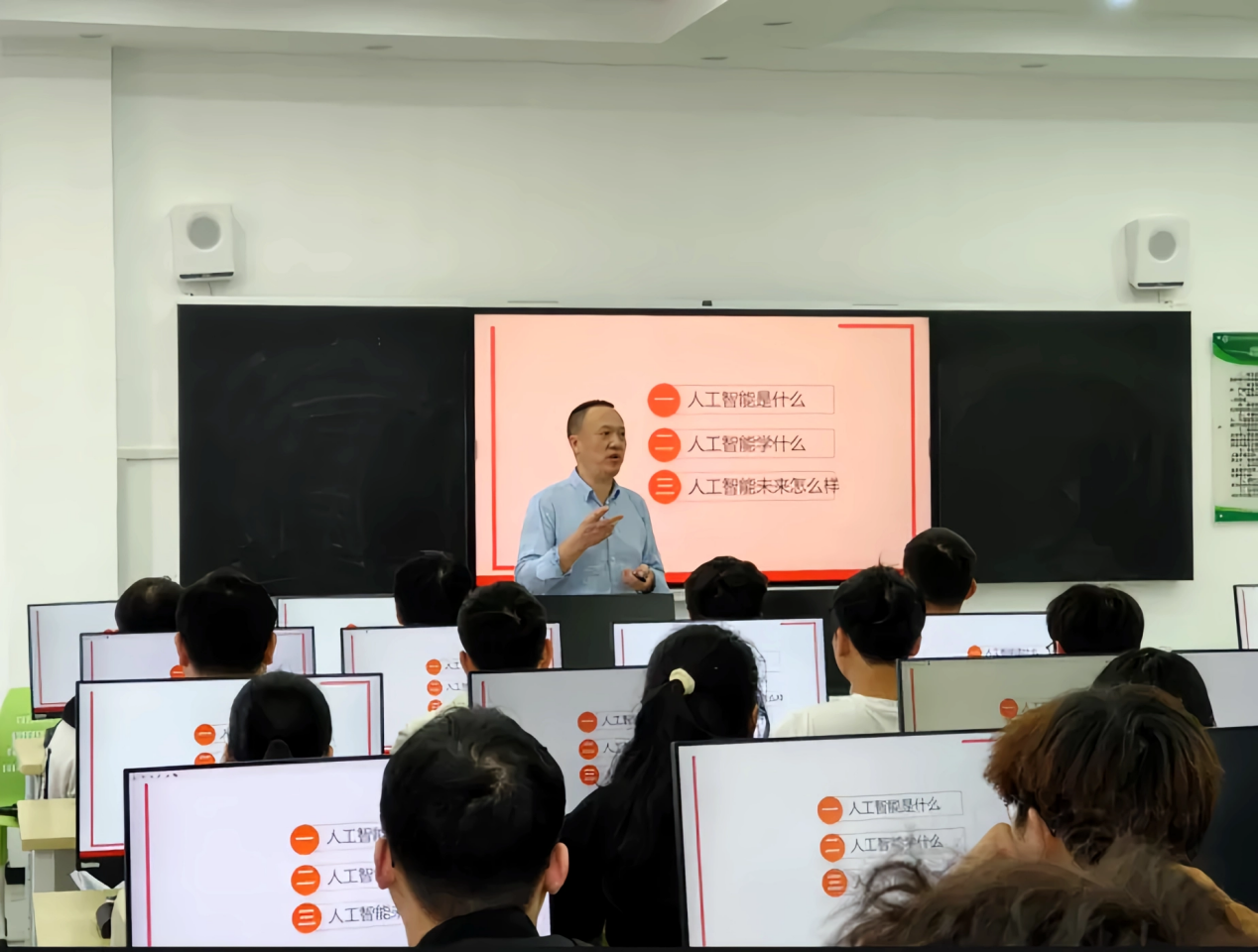 姜经理首先深入浅出地阐述了人工智能训练师的基本概念,强调了这一职业在推动AI技术落地应用、优化算法模型、提升系统性能等方面所发挥的关键作用。随后,结合当前行业趋势和具体工作案例,生动展示了人工智能训练师良好的职业前景,让同学们对这一新兴职业的未来充满了期待与信心。