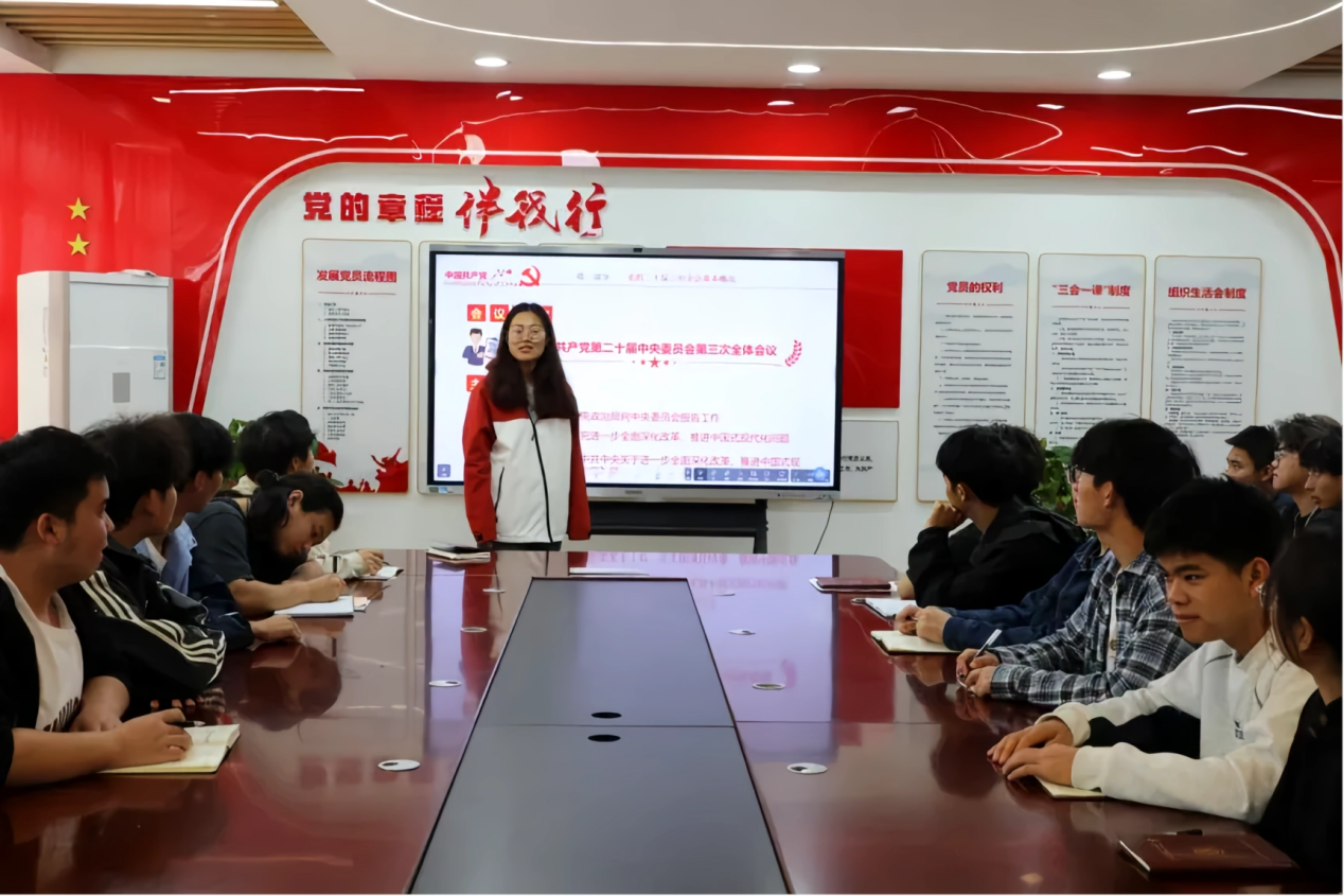 为深入学习贯彻党的二十届三中全会精神,扎实做好全会精神学习宣传工作,有力有效推动全会精神入脑入心,凝聚青春奋进之力,机电工程系党支部组织委员朱键华同志于2024年10月25日中午13:10在厚泽楼322为学院68期基层党校学习班暨学院“青马工程”第十四期大学生骨干培训班学员开展“学习贯彻党的二十届三中全会精神”专题宣讲。