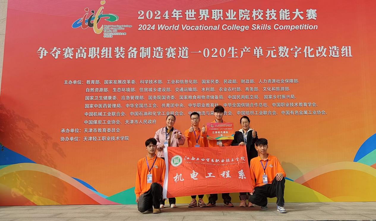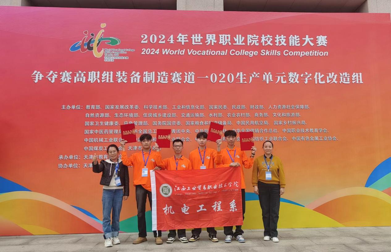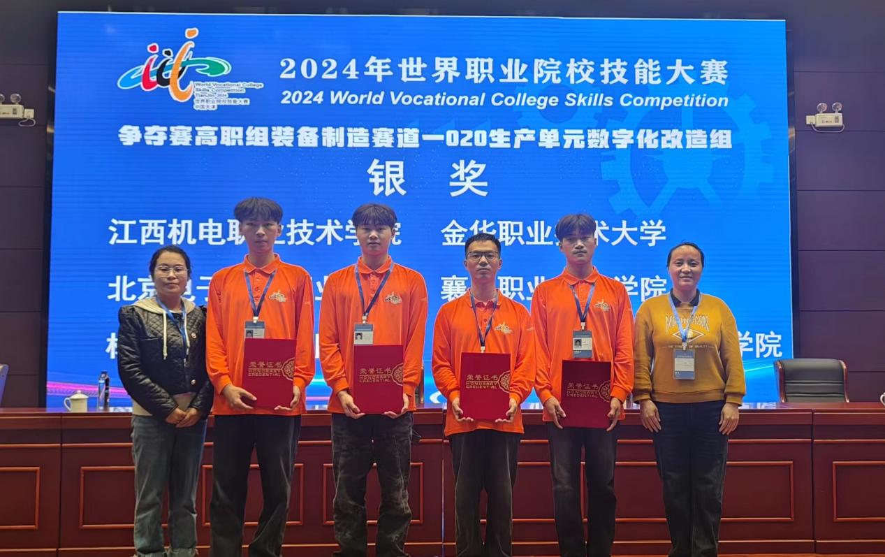 10月28日—10月31日,2024年世界职业院校技能大赛装备制造赛道生产单元数字化改造小组总决赛争夺赛在天津举行,共有来自全国各省(市)的60支代表队约240余名选手同场竞技。经过激烈角逐,由学院机电工程系胡晓莉、李洪娟老师共同指导罗标、袁晨鸿、饶俊杰、徐书清四位同学组成的参赛团队首次参赛,经过奋力拼搏,以总分618分小组排名第二的优异成绩,斩获银奖1项。