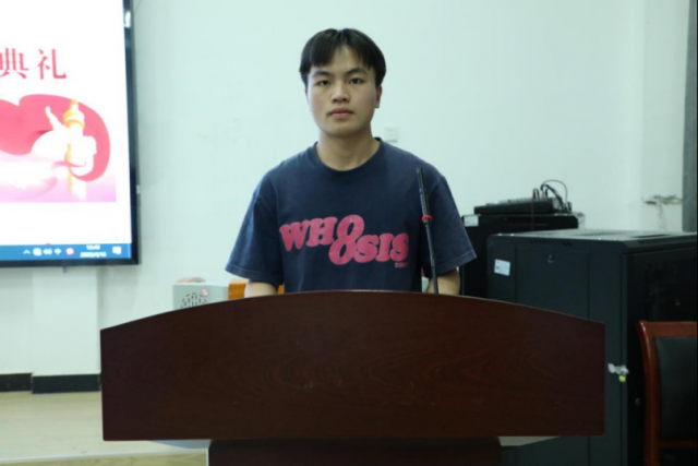 奋战初心向未来美好年华作风良 倪千慧同学作为上期优秀学员代表发言,她在发言中分享了团校学习经历和感悟,表达了对团组织的深厚情感和对新学员的期望。她鼓励青年要不断提升素质和责任感,为实现中国梦贡献青春。同时,她希望新学员保持对团组织的热爱和忠诚,为团组织发展贡献智慧和力量。 新学员谢东同学在发言中,满怀热忱地表达了对团校学习的殷切期待以及对团组织的深厚敬意。他深刻认识到,参与团校学习是向团组织靠拢的关键步骤,并庄严承诺将全身心投入学习之中,保持端正的学习态度,认真聆听教诲,细致做好学习笔记。 随后,本期业余团校优秀学员代表谢东同学发言并带领宣誓。