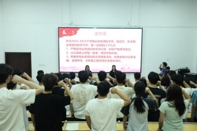 为强化团组织建设,积极引导青年学生深入学习习近平新时代中国特色社会主义思想,切实发挥团组织在青少年群体中的重要影响力,吸引更多优秀青年积极融入共青团组织。机电工程系于4月16日在乐学楼209举办2024-2025学年下学期业余团校开班仪式。机电工程系党支部副书记陈欢,团总支书记王卉怡出席本次开班典礼。