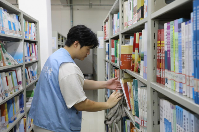 规整知识宝库共筑书香校园 图书馆,作为知识的神圣殿堂,迎来了这群充满活力的团校成员。他们化身的“图书管理员”,对书架上的书籍进行细致的重新归类。严格按照索书号的顺序,将一本本书籍排列得整整齐齐,同时,还仔细清理了书架缝隙中隐匿已久的灰尘。在借阅区,他们积极引导读者文明取书、还书,协助图书馆工作人员优化管理流程,为师生营造出一个更加井然有序、舒适宜人的阅读环境。