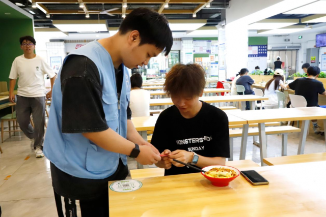 捍卫用餐文明守护舌尖安全 午餐时分,食堂内人头攒动,热闹非凡。团校成员们坚守在出入口、打餐窗口以及用餐区域,认真履行职责。他们耐心引导同学们有序排队、合理按需取餐,及时劝阻浪费粮食的行为。主动协助清理餐桌上的剩饭残渣,为食堂的整洁卫生贡献自己的力量。此外,成员们还向师生们发放精心制作的“文明用餐小贴士”,大力宣传食品安全知识,积极倡导“光盘行动”,以实际行动营造出文明、节约的就餐氛围。