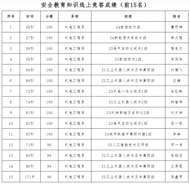 此次安全教育知识竞答活动,通过线上线下的巧妙结合,让安全知识真正走进了同学们的生活。未来,机电工程系将继续创新安全教育形式,开展更多丰富多彩的活动,持续筑牢校园安全屏障,为同学们的青春成长保驾护航! |