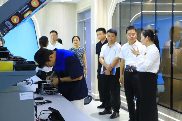 调研期间,管委会一行首先实地参观了系部实训实验室,详细了解实训设备配置、教学场景搭建及学生实践能力培养情况。在实训中心,调研组现场观看了学生实操演示,对我系以“实战化”教学提升学生专业技能的举措给予肯定,并就实训内容与企业实际岗位需求的匹配度展开交流。