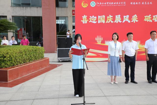 机电工程系25工业互联网应用2班刘燕芝作为新生代表在国旗下发言,她提到一周前与同学从五湖四海相聚学校,在校史馆了解近70载校史后深受触动,还分享了学校“五粮文化”与“精技强国”双重精神。她代表全体新生承诺,将以理想为帆、专业为舟、工贸精神为炬,融入国家发展,练就服务社会的过硬本领。