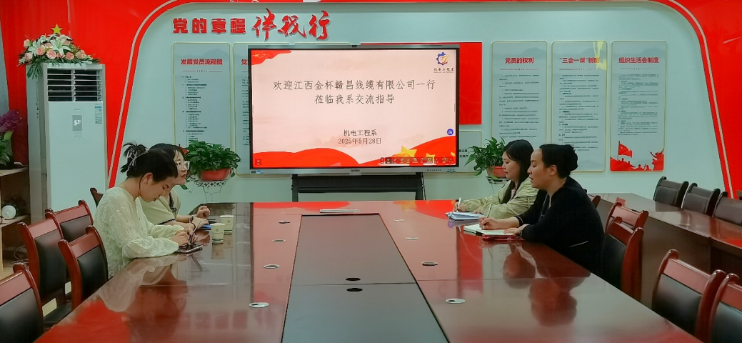 为加强产教融合、开拓校企合作新模式,2025年10月11日,江西金杯赣昌线缆有限公司代表来校开展校企合作专题交流。学院产学研培发展中心主任万颖、机电教研室主任胡晓莉及相关教师共同参加座谈。