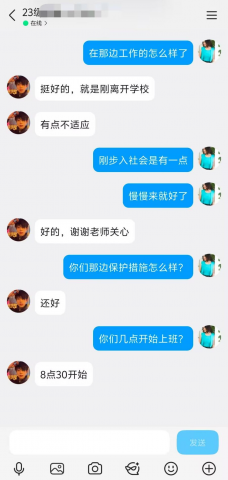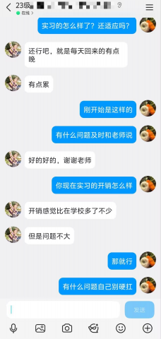 深化稳岗保障工作 学院党委副书记吴新谱带领系部党员教师一同赴省内外合作企业开展稳岗暖心走访活动,实地看望在岗实习就业学生,细致了解学生工作生活、薪资待遇与发展规划,倾听诉求并做好沟通疏导。同时与企业座谈交流,推动实习转就业机制完善、学生劳动权益落实,助力在岗学生稳岗乐业、成长成才。系部更是建立就业台账,实时了解学生实习就业去向。