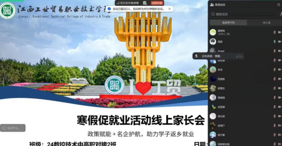 凝聚家校协同合力 系部面向毕业生及家长召开线上家长会,系统解读专升本、征兵、自主创业、留赣就业等利好政策,针对性解答升学备考、求职规划等疑问,已完成24个班级线上宣讲,推动家校同向助力学生职业发展。