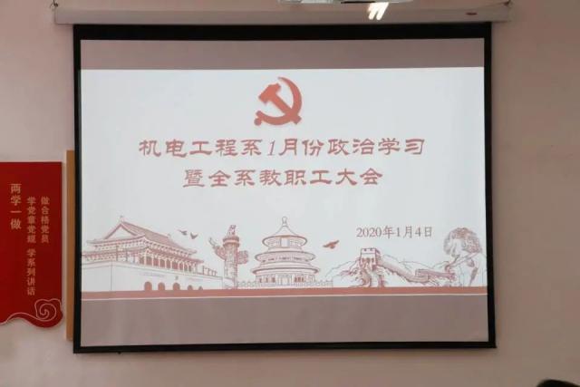 为深入学习贯彻党的十九届五中全会精神,扎实推动学院“十四五”规划编制工作,始终坚持以习近平新时代中国特色社会主义思想为指导,不断增强“四个意识”、坚定“四个自信”、做到“两个维护”。光明党支部于1月4日下午12:40召开本系1月份政治学习暨全系教职工大会。会议由机电工程系副主任马龙凤(主持工作)主持,系部全体党员同志、教职工参加学习。会议主要分为五项议程: