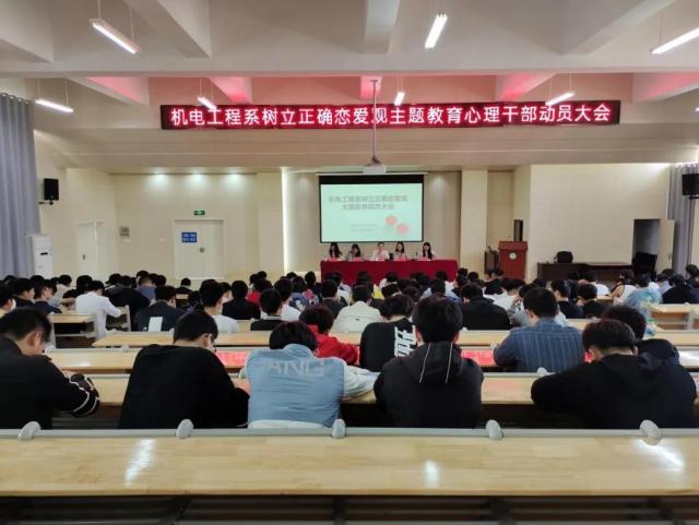 为了让同学们树立正确的恋爱观,更好的认识和处理情感问题,机电工程系于2021年3月29日下午1点在志学楼504开展了以大学生如何树立正确恋爱观为主题的教育动员大会。出席本次会议的有我系学生管理副主任赵敏、学管员张信歌老师、专职辅导员罗晓雯老师、陈高超老师、肖欢老师以及机电工程系19、20级各班心理委员、寝室心理保健员和社联部所有成员。