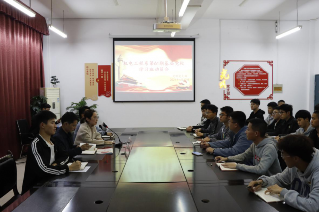 基层党校是党的事业的重要组成部分,是党教育和培养党员的主渠道。根据学院2021年工作的统一安排,经过系部前期各班的推荐报名和审查工作,推选出一批由41名同学组成的基础党校学习队伍,并于2021年4月12日在厚泽楼324室召开第61期基层党校学习班动员会,参加大会的有学院学工处副处长陈新文、机电工程系光明党支部组织委员刘珺玮、团总支学生会执行主席谭礼宾及机电工程系61期基层党校学习班学员参加了会议。