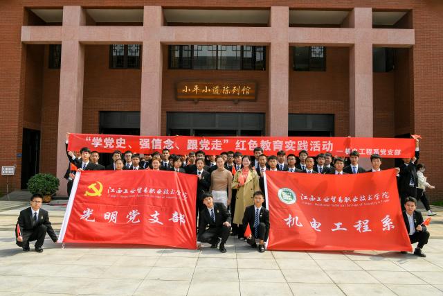 4月13日,江西工业贸易职业技术学院党委书记万玉青率班子成员、学院学工处副处长陈新文、机电工程系副主任马龙凤、机电工程系光明党支部组织委员刘珺玮及系部第61期基础党校学员,赴小平小道陈列馆开展党史学习教育专题学习。我系师生以高昂的精神面貌、热诚的学习态度,追寻老一辈无产阶级革命家的光辉足迹和革命的岁月,感悟一代领导人的坚强意志,不辞辛苦、勤俭节约的高尚品行,锲而不舍的学习热情,平易近人的待人态度以及作为领导人的忧国忧民情怀。
