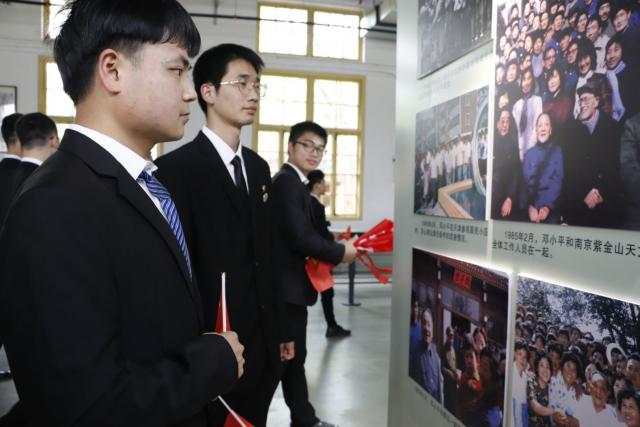 在一幅幅照片、一件件实物、一个个工作台前,大家一边听讲解,一边思考,一边追忆着邓小平同志当年工作生活的情景。邓小平同志在逆境中不忘初心,追求理想,坚定信仰,不畏艰辛、攻坚克难的精神与忧国忧民的爱国情怀,深深地感染着每一位同学,进一步激发了大家担当实干、实现中华民族伟大复兴“中国梦”的使命感和责任感。