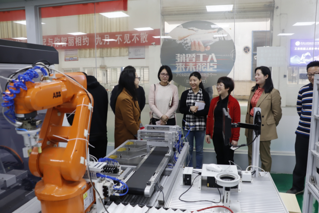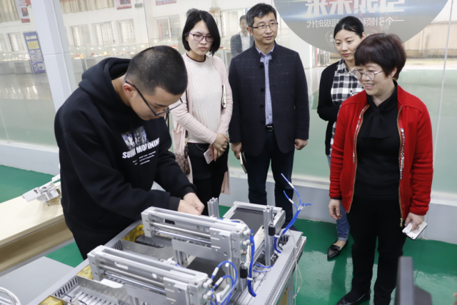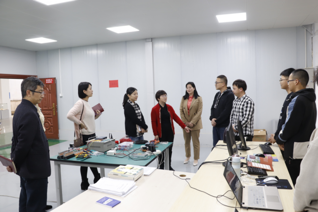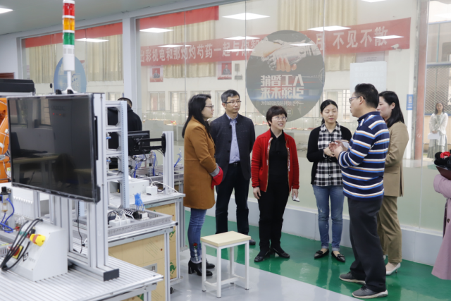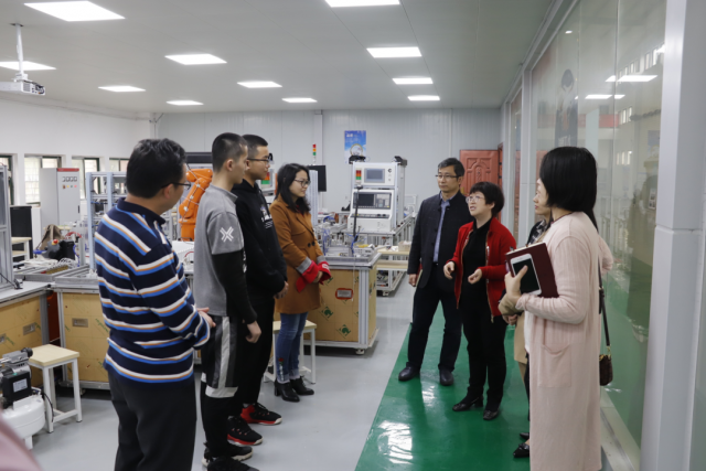 为深入了解机电工程系国赛集训学生的学习情况,4月16日下午,学院分管教学副院长胡晖,教务处处长曾聪,副处长涂宇胜一行人,在马龙凤副主任(主持工作)、傅艳华副处长的陪同下来到两个赛项的集训场地---智能制造中心,亲切看望慰问了机电系集训学生与指导老师。