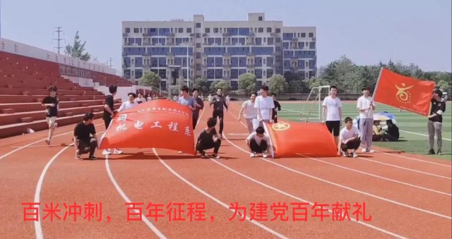 第二部分是100米冲刺跑,宣传口号是:百米冲刺,百年征程,为建党百年献礼!师生百米冲刺跑为建党100年献礼活动的安排如下:分5波跑,一排8人,(剩下的同学负责牵开旗帜和拍照等准备工作)象征着这100年来中国共产党5代人为国家的繁荣和民族的振兴而前赴后继地不懈努力。 由于近期各类工作安排密集活动众多,时间空档少,所以只能安排到中午时分,当时气温31℃,在工贸学院体育场烈日当头热浪逼人,机电系19机制2班的50多名同学不惧高温克服困难,在辅导员彭老师和班长刘贤攀的带领下完成了此次十分有意义的活动,进一步激发同学们的爱党爱国爱工贸热情,充分表达师生喜迎建党100周年的革命情怀,牢记初心使命,弘扬时代旋律,传递正能量,增强了同学之间的凝聚力,更加强了同学锻炼身体和班级集体意识,很好地展现机电师生齐心抗疫积极向上的精神面貌。 |