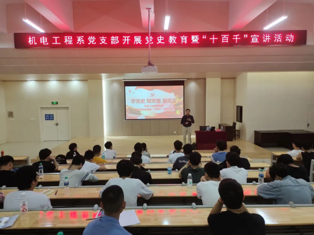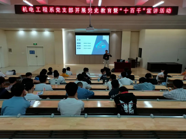 为积极响应国家对党史学习教育的号召,2021年5月6日晚上19:00,机电工程系机电教研室主任潘桂根党员教师,在志学楼504向2019工业机器人1班、数控高职衔接班全体同学上了一堂精彩的党史课。
