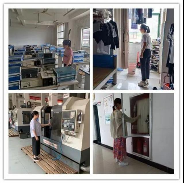 系领导马龙凤、傅艳华和陈新文带领相关负责老师认真检查办公区域、实训场所和学生宿舍的安全情况。对学校楼宇、设施安全隐患进行了认真排查,如学生宿舍楼、实训设备、水电安全以及消防等设施,对排查出的问题及时整改和上报。经排查发现两处宿舍安全指示灯不亮,数控中心二楼安全指示灯不亮,已上报学院后勤维修;两处灭火器低压已上报相关部门;一处水带杂乱已整理好放入消防窗。以上问题已在6月9日、10日两天集中整改。 加强假期安全教育
