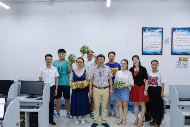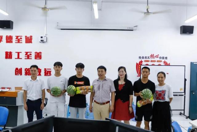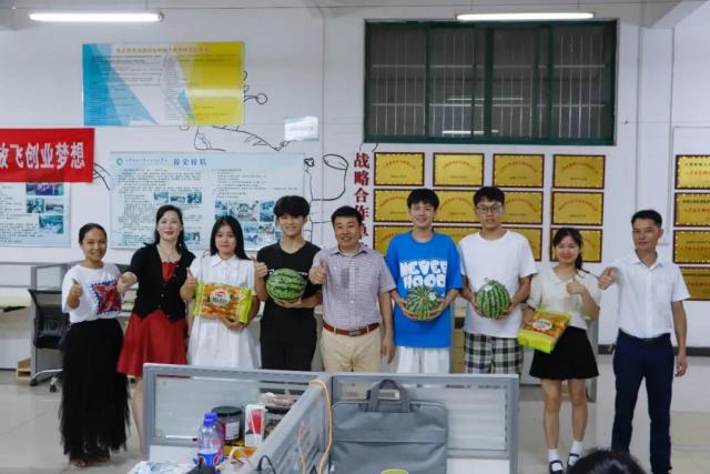 今年的暑假,又是个忙碌而充实的假期。2021年6月27日晚上19:30,学院副院长宋小兵、机电工程系主任马龙凤、学院学工处副处长陈新文先后到思泽楼和智能制造中心等地,深入一线了解暑期竞赛队师生的工作情况。带来西瓜,面包来看望并慰问坚守工作岗位、仍旧奋战在一线的师生,为这个酷暑天气带来清凉的一“夏”。