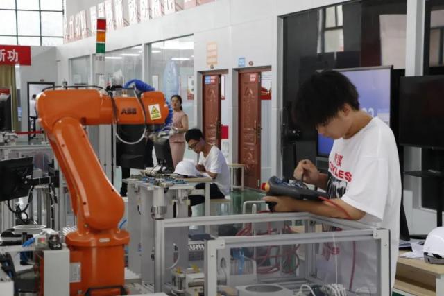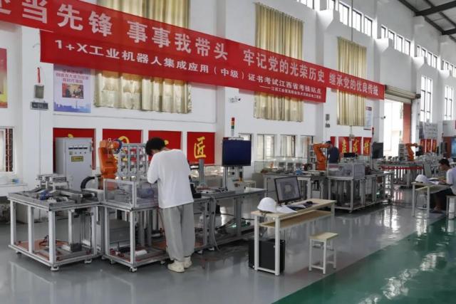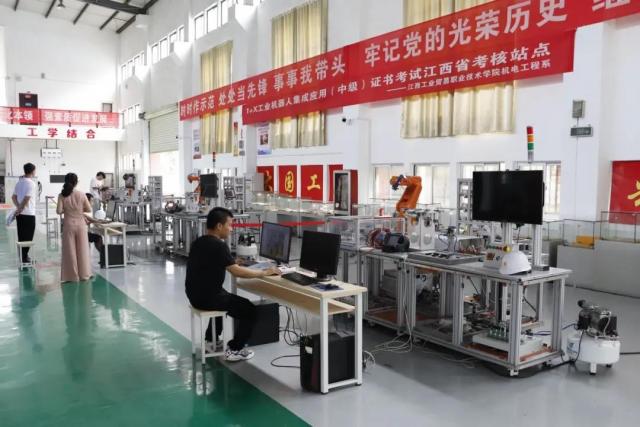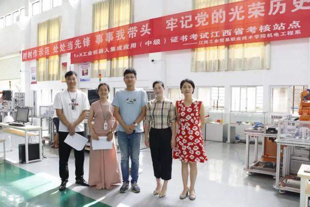 为贯彻落实国务院《国家职业教育改革实施方案》及教育部《关于在院校实施“学历证书+若干职业技能等级证书”制度试点方案》等文件精神。机电工程系积极开展1+X证书制度试点工作,于2021年6月25日—6月27日在学院智能制造中心顺利开展1+X工业机器人集成应用职业技能等级证书。此次“1+X”工业机器人集成应用职业技能等级证书考核工作得到了院系的高度重视,产学研培中心主任熊彬、机电工程系主任马龙凤来到现场,确保考试的顺利进行。