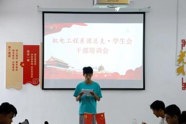 为进一步贯彻落实从严治会、提高学生干部的管理能力,发挥学生干部的带头作用、提高学生干部的整体素质、加强学生队伍的凝聚力,确保学生会改革落到实处。根据省学联工作要求及学院团委关于习近平总书记“七一”重要讲话精神的培训要求。机电工程系根据学院要求组织全体学生会干部开展新学期第一次干部培训会。本次培训会分为四个议程,由机电工程系团总支书记张敏玲老师主持。